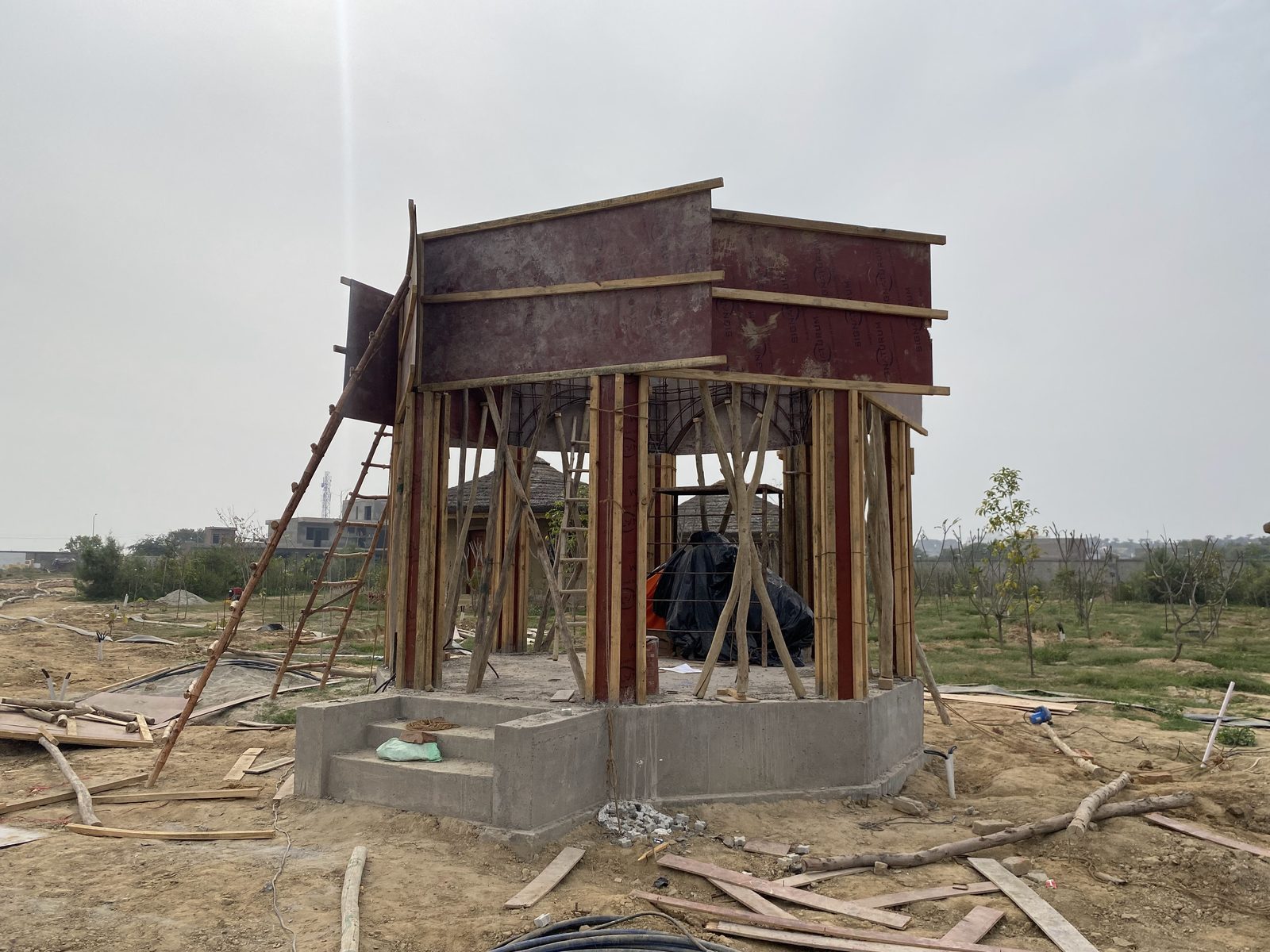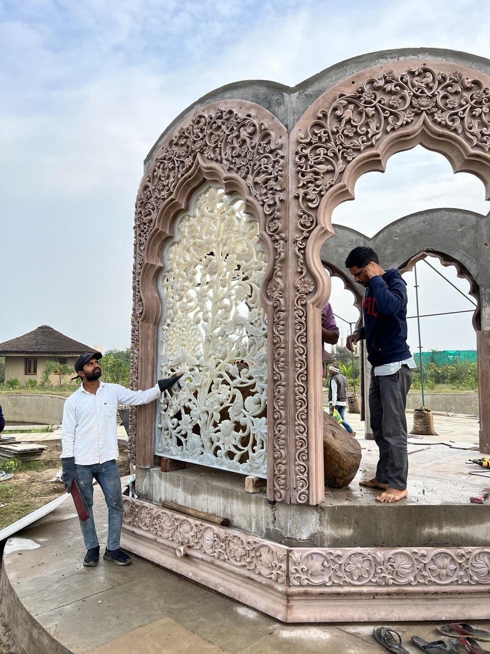 Как вы, наверное, уже догадались, первой постройкой на участке стал храм Гирираджа. Архитектура храма получилась не слишком оригинальной: четыре металлических столба и жестяная крыша над ними. Но праздники в этом храме проходили самые настоящие.